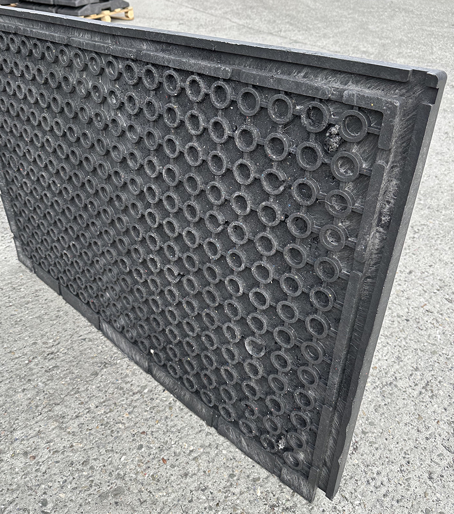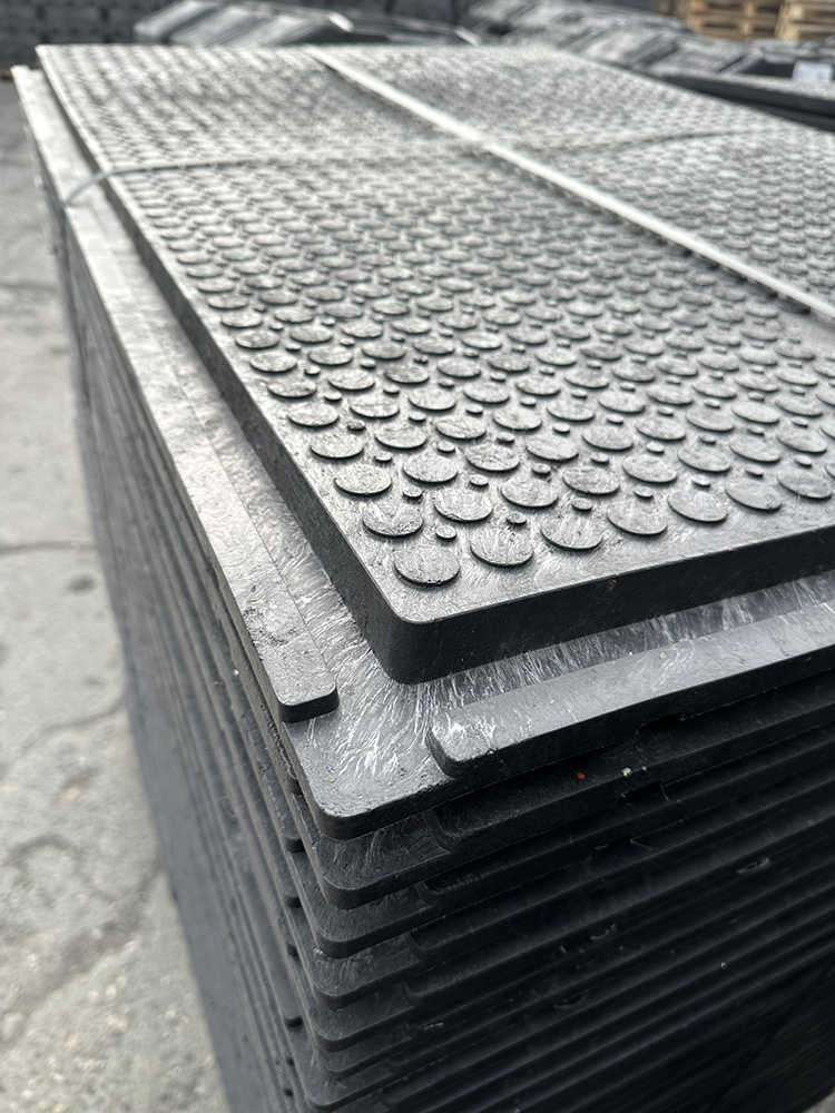W ciągłej sprzedaży posiadamy hurtowe ilości bardzo wytrzymałej płyty drogowej wykonanej w 100 % z recyklatu PVC.
